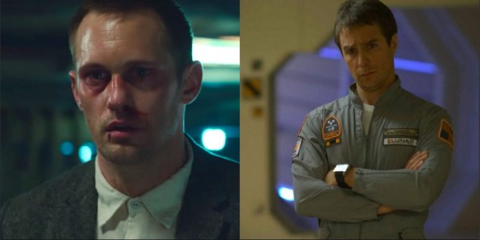 Rockwell’s cameo in Mute is fleeting, but offers some closure to the ending of his character. He appears as number 156 of Sam Bell’s clones in a newscast watched by the mute bartender, Leo (Alexander Skarsgard), in a court trial against Lunar Industries. And Rockwell can be seen again in a poster decorating a dimly lit street.