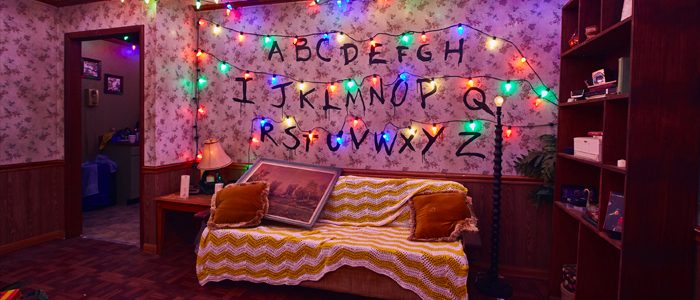 The images showcase some of the eerily-authentic environments guests will encounter at “Halloween Horror Nights” 2018 – including the Byers’ living room adorned with an erratic display of flashing Christmas lights, Hawkins National Laboratory in the Upside Down, Will’s makeshift fort called Castle Byers and more.